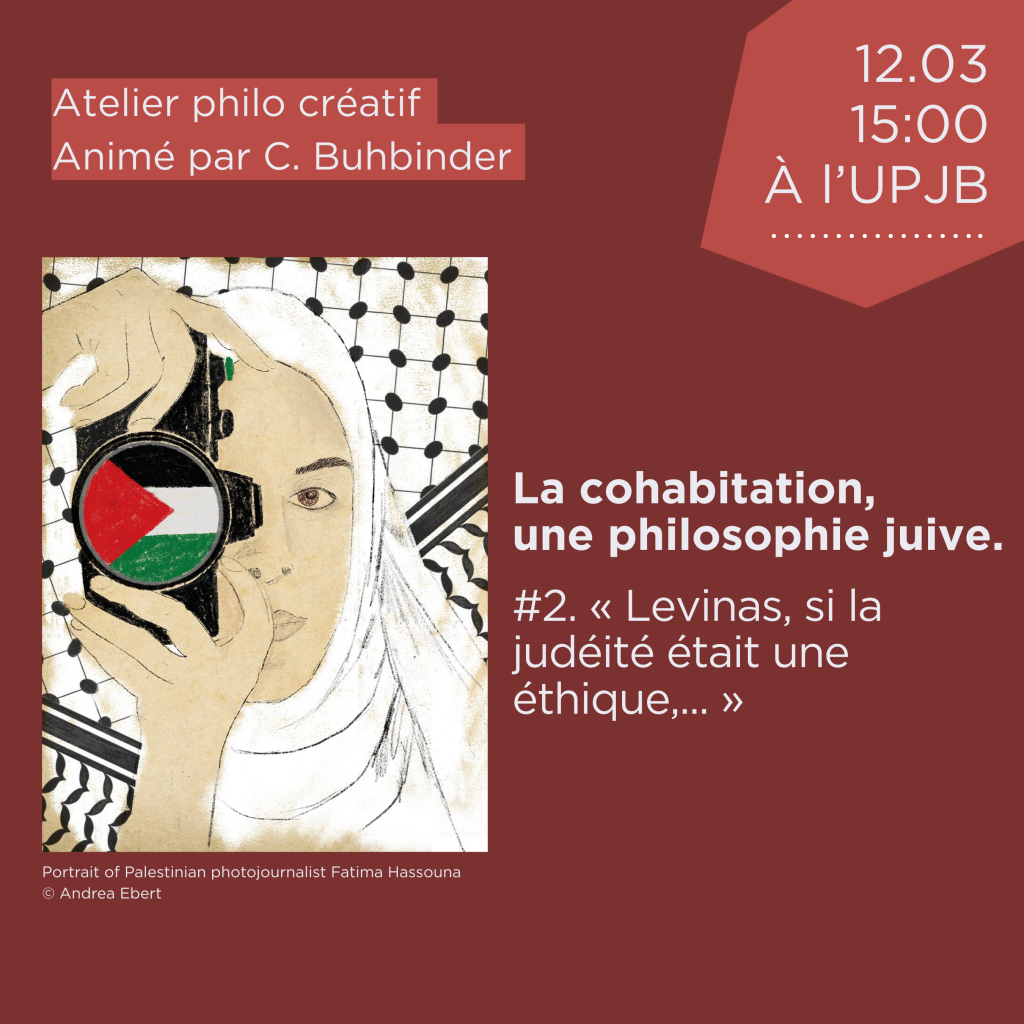 Le séminaire philosophique organisé l’année passée à partir du livre de Judith Butler, Vers la cohabitation, judéité et critique du sionisme se poursuit à l’UPJB avec un nouvel atelier de réflexion/discussion/création philosophique. Cette fois-ci, la réflexion intègrera une dimension créative et artistique, et sera donc encore plus participative. Les concepts philosophiques seront travaillés sur base d’ateliers créatifs ou de discussions. Avec l’accord des participants, le travail créatif pourra faire l’objet d’une exposition finale à l’UPJB.