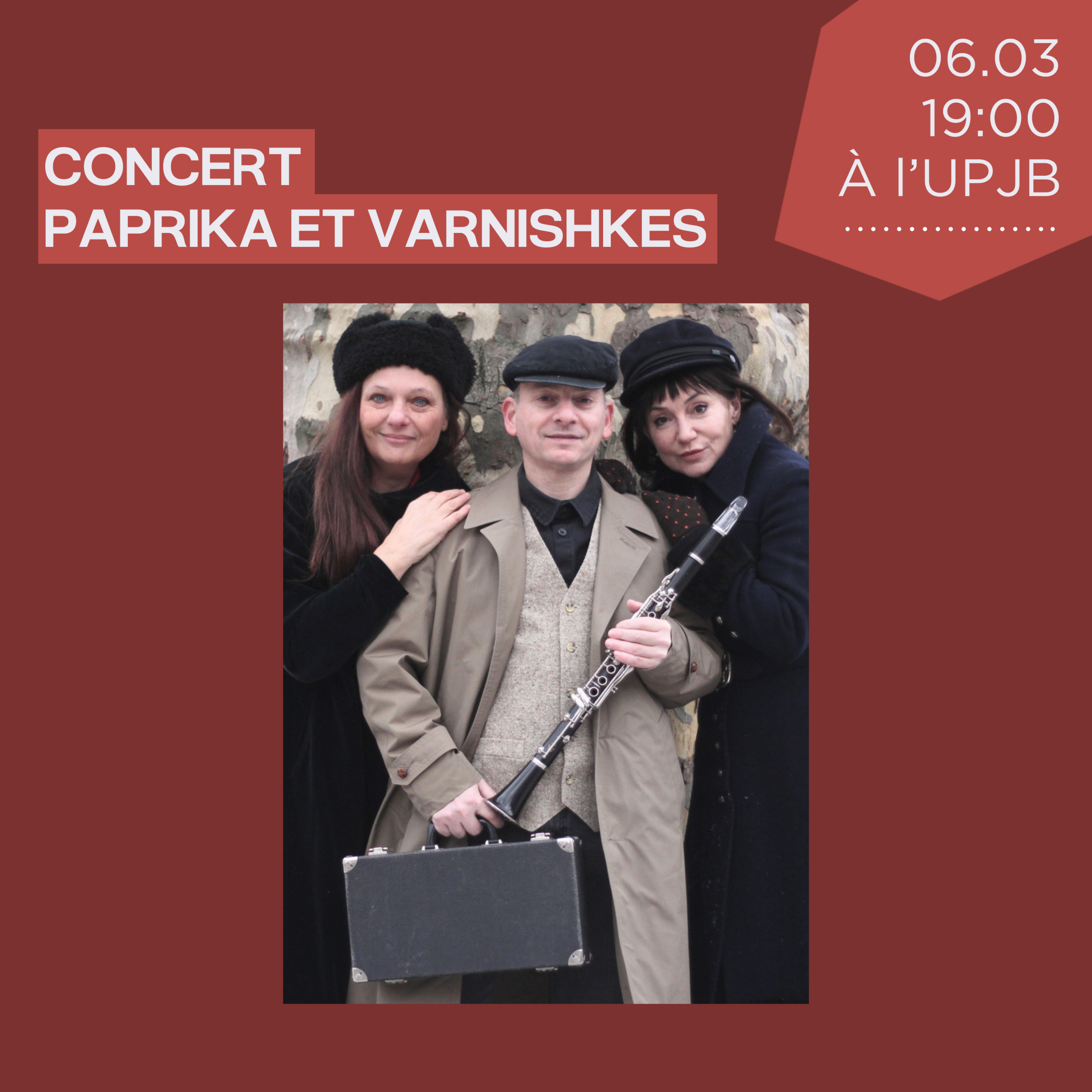 Le vendredi 6 mars à 19h, l’UPJB vous accueille pour le concert de Paprika et Varnishkes.