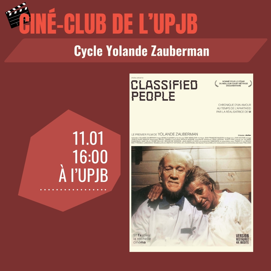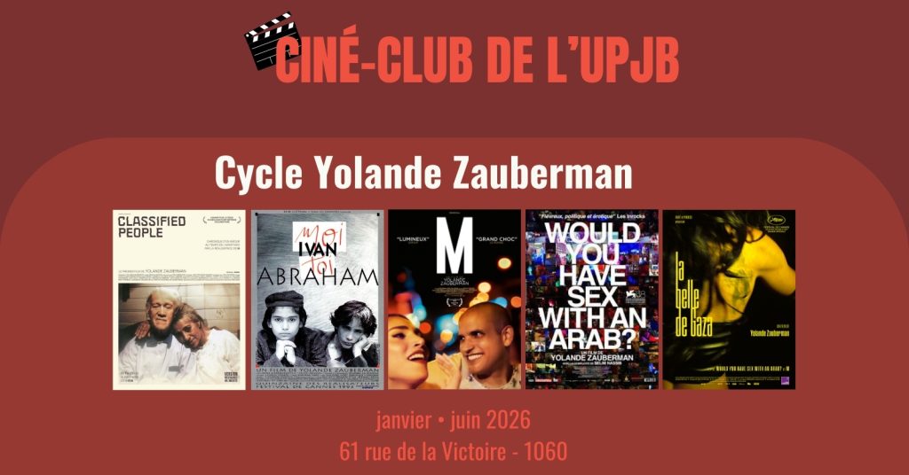De janvier à juin 2026, le ciné-club de l’UPJB organise un cycle de films de Yolande Zauberman. De son premier long-métrage tourné clandestinement en Afrique du Sud en 1987 de « Classified people » à la « Belle de Gaza » (2023), le cinéma de Zauberman donne la parole à des personnes qui affrontent la domination des puissants à partir des désirs sexuels, amoureux, érotiques. C’est un cinéma où l’intime et le politique font un.