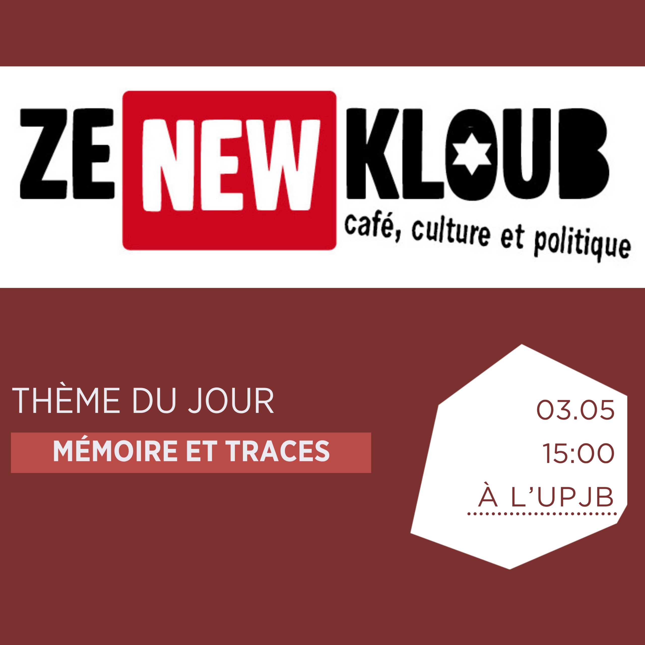 Qu’est-ce qui préside à ces choix ? Qu’est-ce qui nous permet, ou nous interdit, de faire récit perpétué de nos parcours? Est-ce une question de loyauté à l’égard de ceux qui n’ont pu se dire? De confiance en soi ou d’estime de soi ? De pudeur, de peur de s’exposer ? Au moment où nous mettons en place la bibliothèque de l’UPJB, dans un souhait d’appropriation collective et de transmission de nos histoires multiples, il me semble que la question des traces des « anciens » se pose avec acuité. Et vous, qu’est-ce qui vous retient d’en faire le récit ? Ou que souhaitez-vous faire des mots que vous avez déjà posés sur le papier ? Prêt.e.s à en discuter ensemble ? Bienvenue au New Kloub de ce dimanche 3 mai ! »