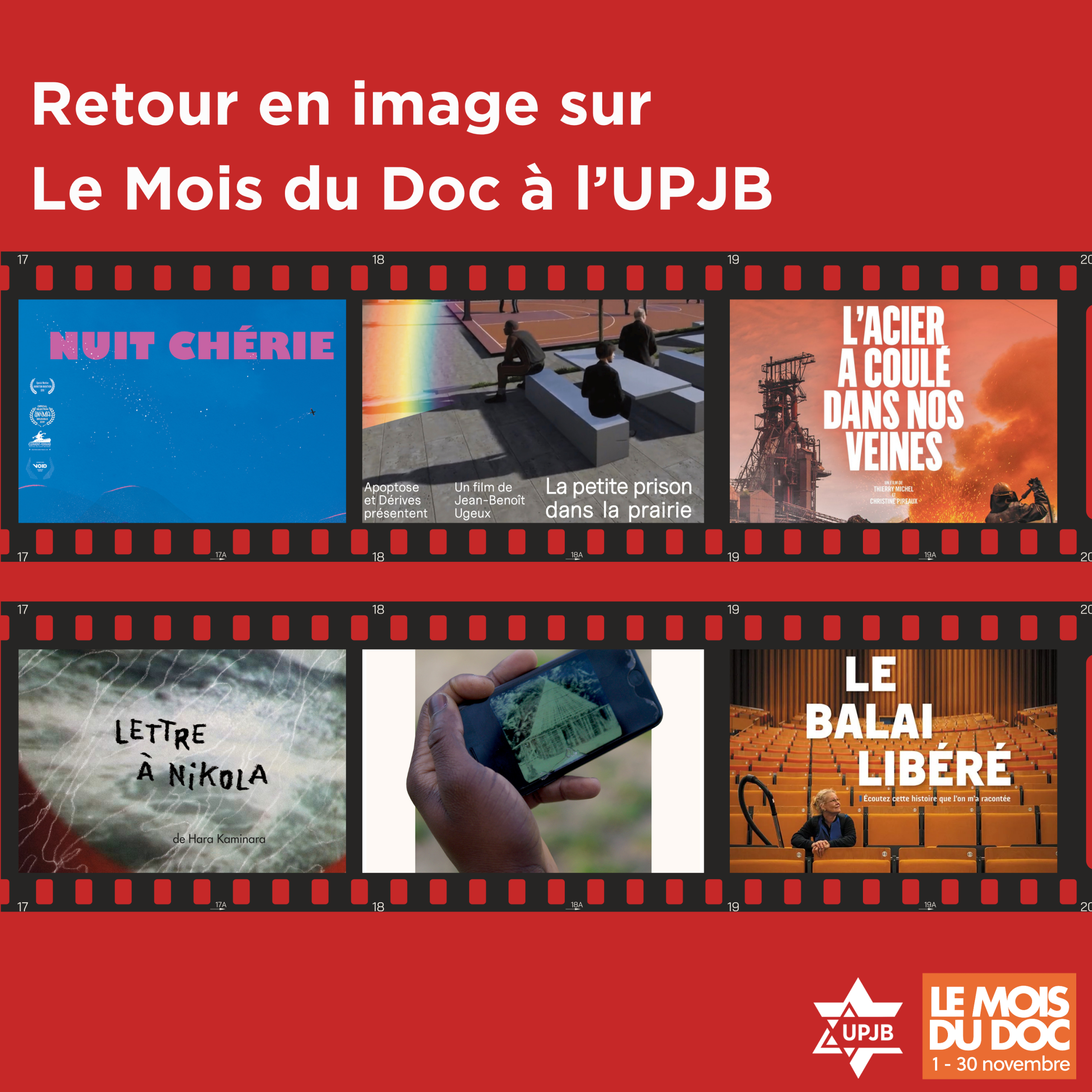En novembre, l’UPJB participe activement au Mois du Doc, un festival visant à promouvoir le cinéma documentaire belge francophone au travers de nombreuses projections à Bruxelles et en Wallonie.